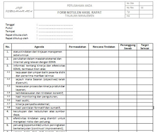 | form notulen hasil rapat tinjauan manajemen |